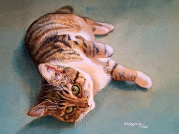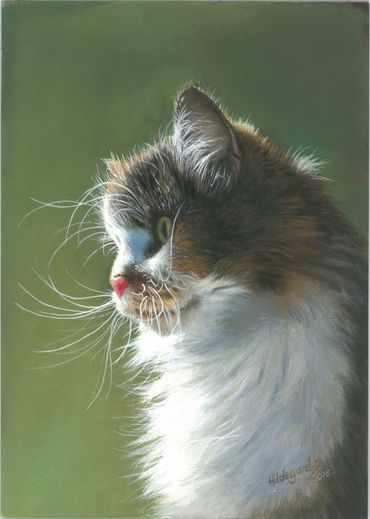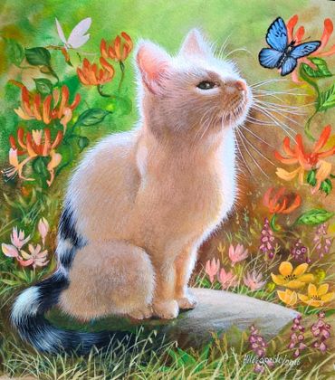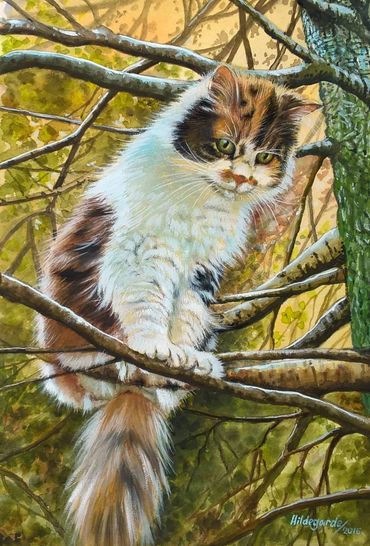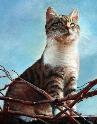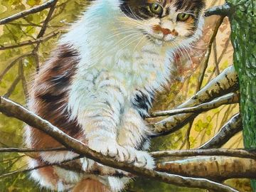I enjoy walking in my spare time and many of my artwork pieces are directly influenced by these hikes into natural environments. I love recreating plants and wildlife in my work. Having four cats I love to use them as models, and I have plenty of opportunities to do so.